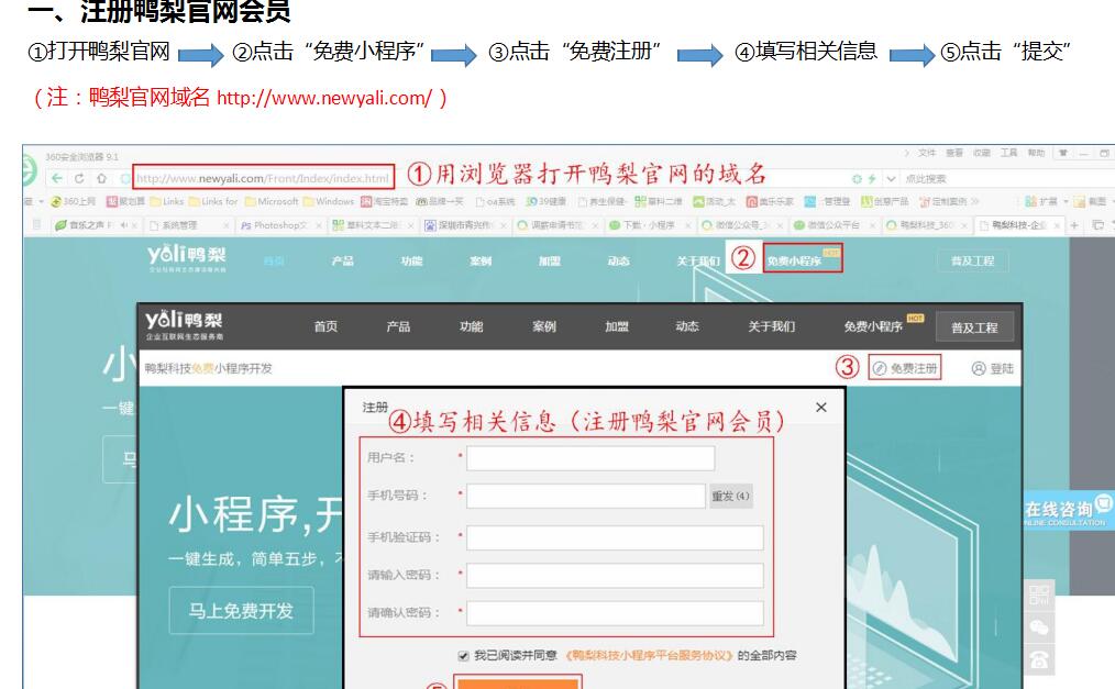 个人免费注册鸭梨官网 小程序的操作流程
