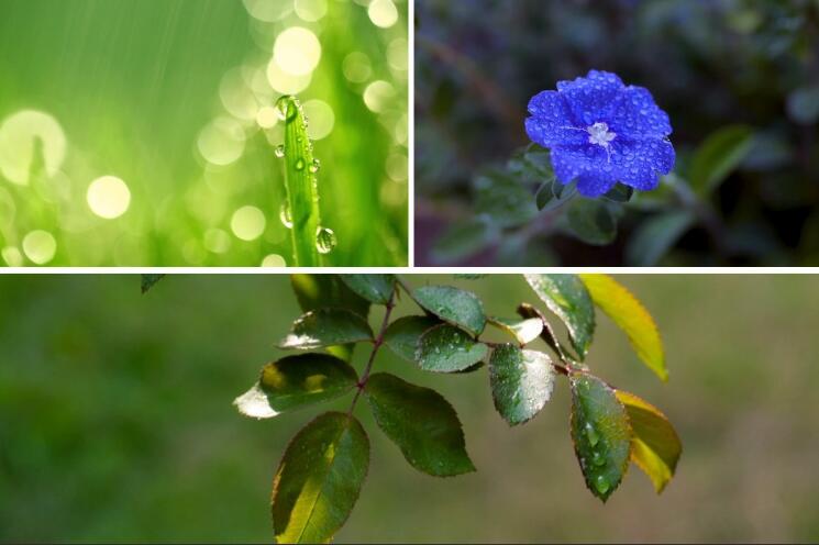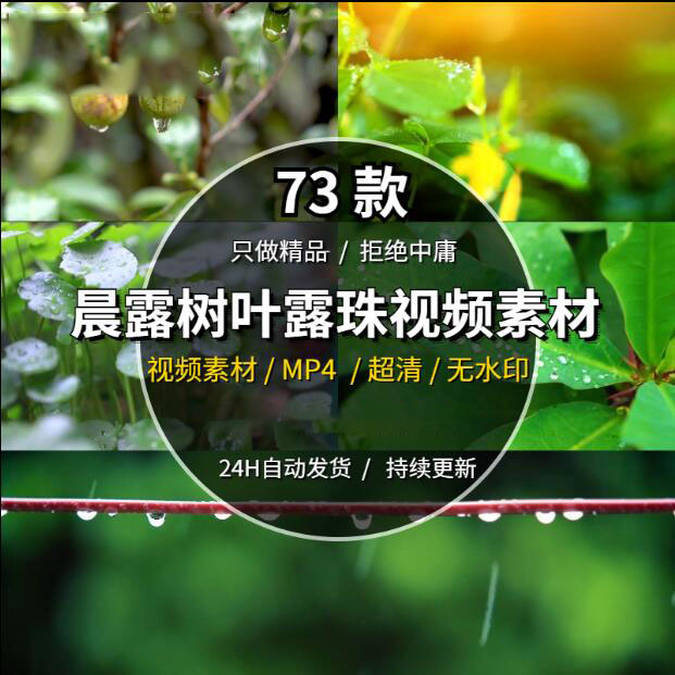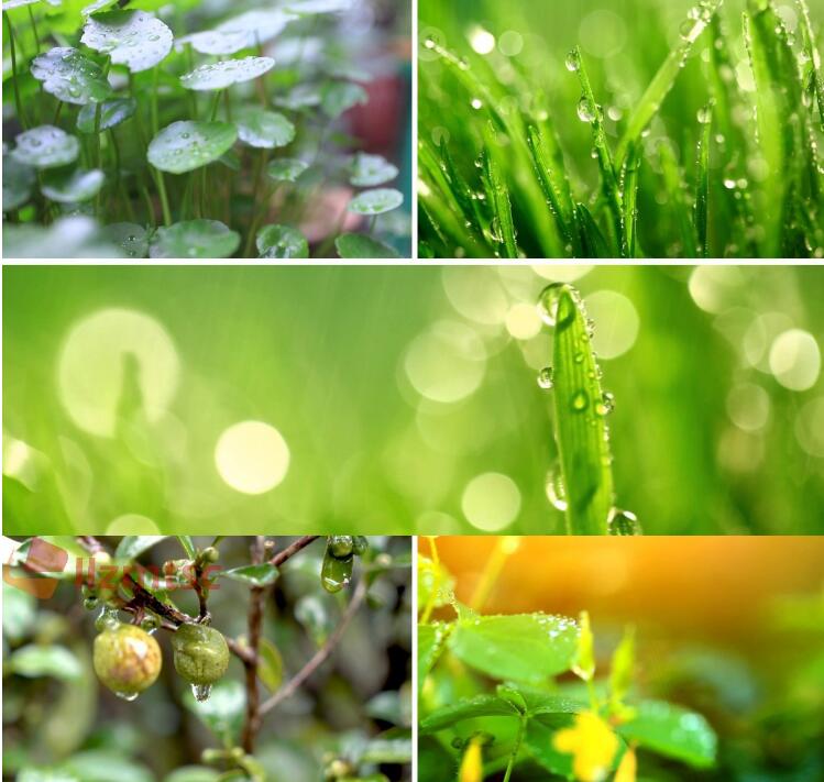 大自然植物绿叶雨滴下雨镜头清晨树叶水珠水滴空镜头抖音视频素材